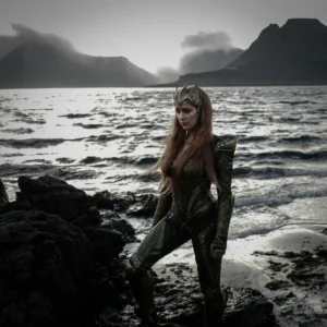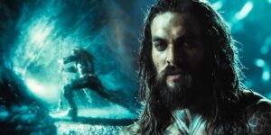 Jason Momoa si il ne m’avait pas emballé dans le film Aquaman où il nous gratifiait souvent de blagues balourdes pas drôles qui plombaient un peu son personnage (contrebalancés heureusement par l’intelligence de Arthur Curry et son excellente culture générale et ses connaissances sur l’histoire de l’Antiquité) campe ici un Aquaman qui est un véritable dur à cuire, très sérieux.