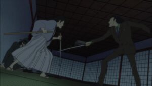 Au sujet des antagonistes, Mishiro est un ennemi cruel et sans scrupules prêt à tout pour atteindre son objectif quant à son homme de main Kageura, il donnera bien du fil à retordre à Goemon… Je crois que la dernière fois qu’un/une ennemi(e) a été aussi coriace et dur à vaincre pour notre samouraï fut dans le téléfilm Angel Tactics de 2005.