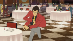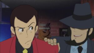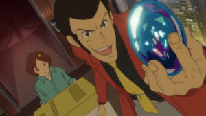 Lupin parvient à dérober la précieuse pierre en étant épaulé dans sa tâche par ses fidèles acolytes Jigen et Goemon mais se rend compte par la suite qu’elle est fausse.