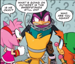 Nit ainsi que son collègue Don saisissent l’occasion pour soumettre une requête envers notre héros : ils lui demandent de retrouver l’équipe Chaotix. En effet ce sont des amis de longue date pour eux, mais ils les ont perdu de vue et s’inquiètent pour eux. Surtout que Vector, Espio et Charmy menèrent leur enquête sur Clutch afin de percer à jour ce qu’il manigance…