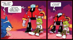 Immédiatement après, Surge passe à l’attaque et électrocute Sonic, Clutch et Eggman !