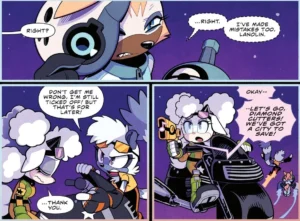 Jewel se confie alors à Tangle et Whisper étant donné qu’elles sont les seules personnes envers qui elle fait totalement confiance et veut absolument contrecarrer les noirs desseins de Clutch. Tangle lui dit par ailleurs que le Phantom Rider n’est nul autre que Sonic. Jewel considère donc cela comme une excellente nouvelle et qu’il faut absolument retrouver le céruléen hérisson afin qu’il puisse leur venir en aide…
