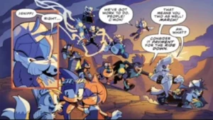 C’est alors que Sonic et l’ensemble de ses ami(e)s mettent leurs efforts en commun pour sauver la population. Ils arrivent non seulement à détourner le vaisseau de sa trajectoire afin qu’il se dirige vers le QG de la restauration, mais aussi à évacuer la totalité des civils en les mettant en lieu sûr !