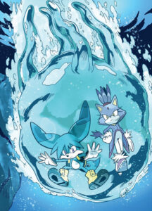 Kit se montre assez cynique envers le renard en lui demandant si il n’a pas une invention dont il a le secret pour résoudre ce problème, Tails répond du tac au tac à Kit que ses pouvoirs liés à l’eau sont les seuls qui permettraient à Blaze de mettre un terme au futur engloutissement de la ville.