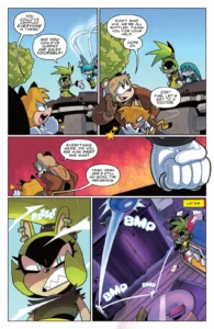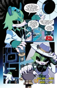 Nous revenons au « temps présent » et alors que Mimic tapie dans l’ombre s’apprêta à poignarder Whisper dans le dos, Sonic et Tails viennent rejoindre les Diamond Cutters et leur font part de leurs derniers exploits…