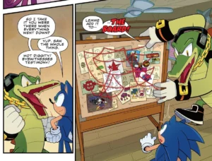 Sonic vient rendre visite à l’équipe Chaotix qui lui demande quelques explications ! En effet le trio de détectives souhaite savoir pourquoi il s’est déguisé en Phantom Rider lors des courses. Le céruléen hérisson leur explique alors qu’il avait revêtu cette identité secrète afin d’avoir plus de facilités pour démanteler le trafic de Clutch l’opossum et de mettre un terme à ses noirs desseins. Vector le croit et ensuite ils décident dès lors tous les quatre de traquer le crapuleux homme d’affaires, la dernière fois qu’il a été vu fut lorsqu’il a été capturé par Eggman qui n’a guère apprécié que l’opossum ait employé ses inventions à son insu…